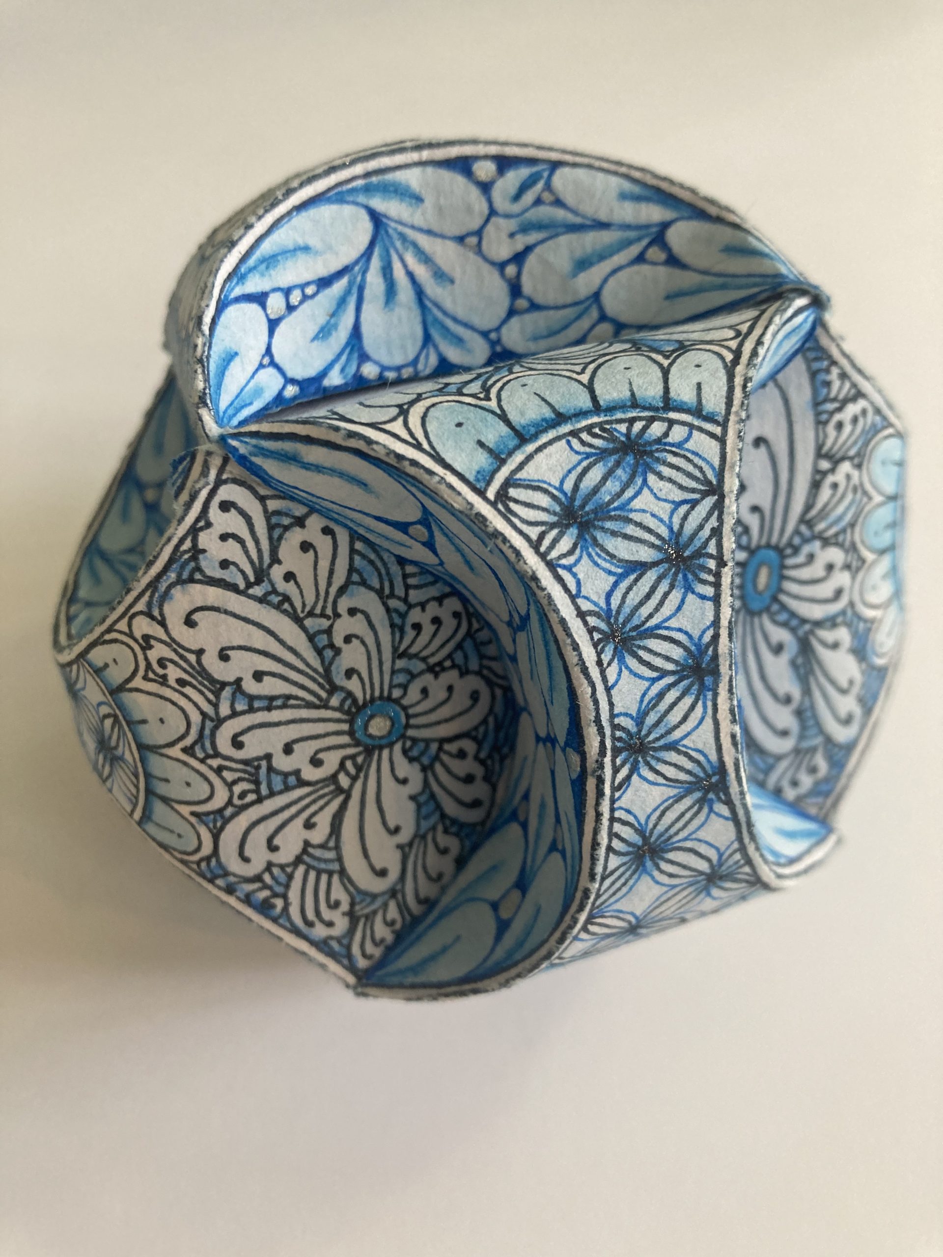 All materials are provided. Each student will receive a kit containing 3Z Zentangle tiles, a white Sakura Gelly Roll pen, white charcoal pencil, and blending tools (tortillons). Additional shared supplies will also be available.